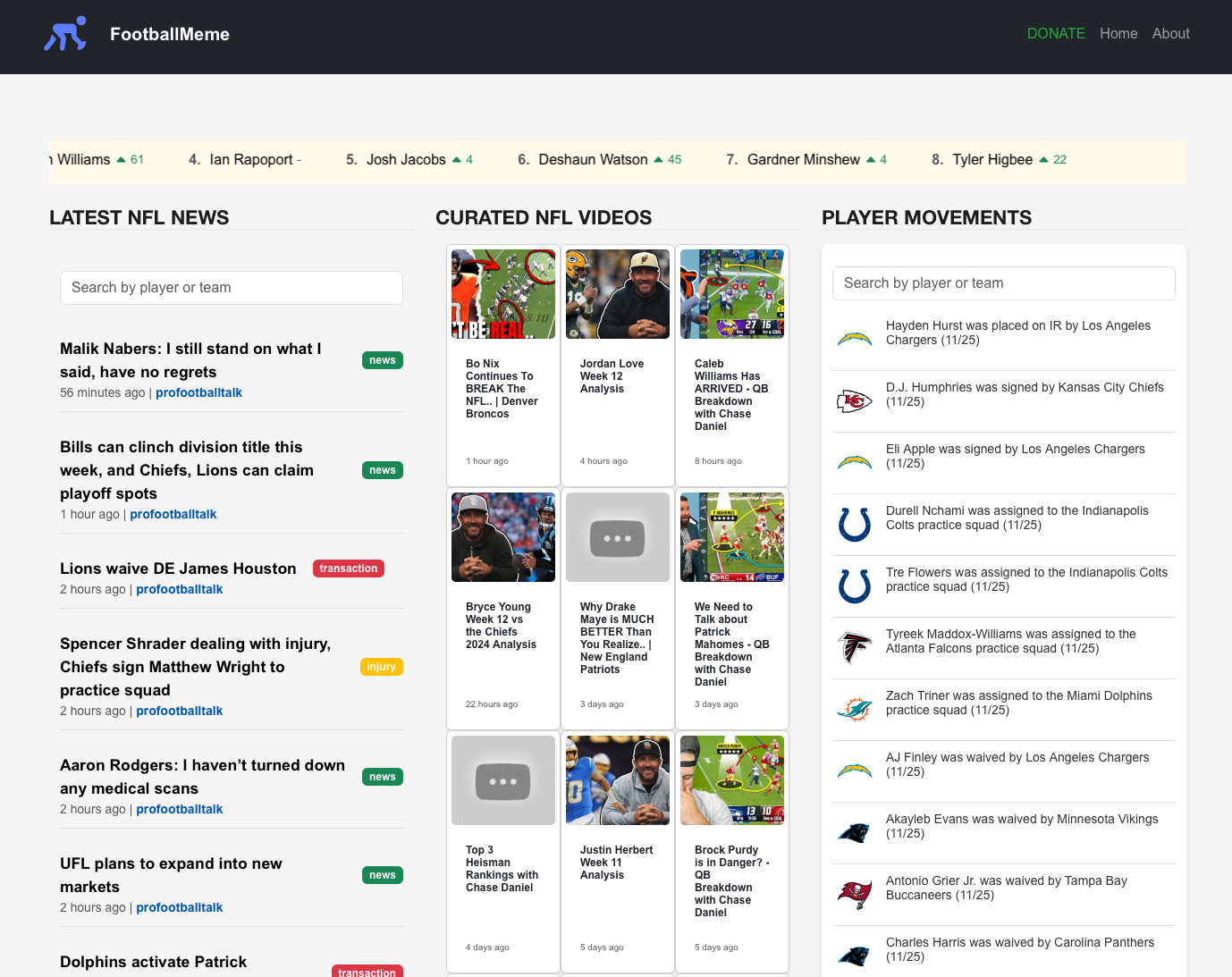 So, I wanted to build a trending topics feed into FootballMeme.